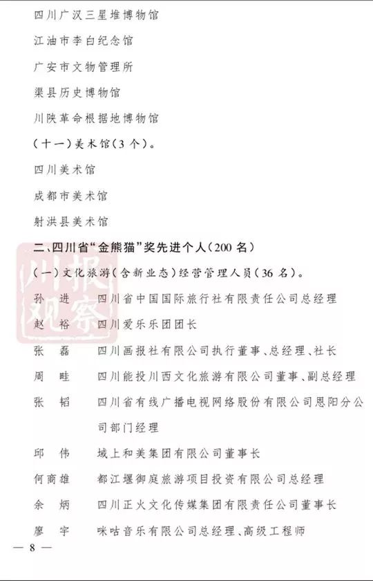 4月18日,记者从四川省人民政府官网获悉,四川省“金熊猫”奖先进集体和先进个人名单正式公布!